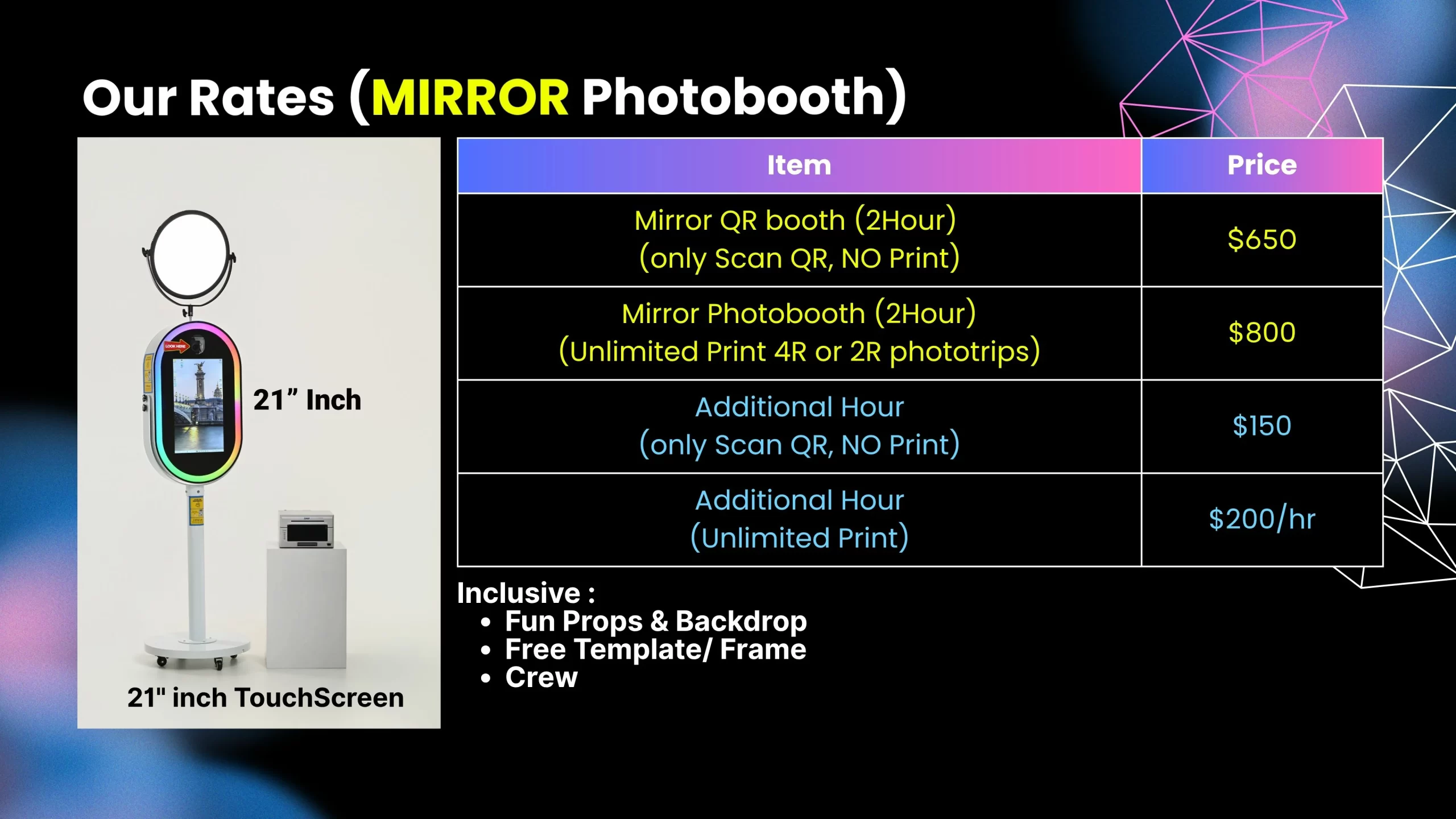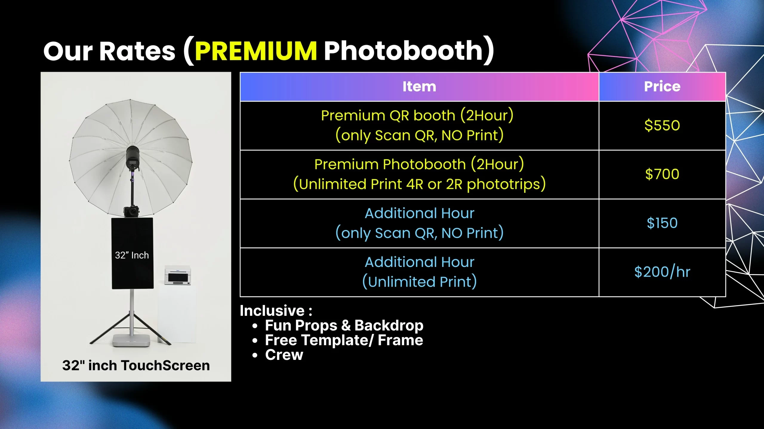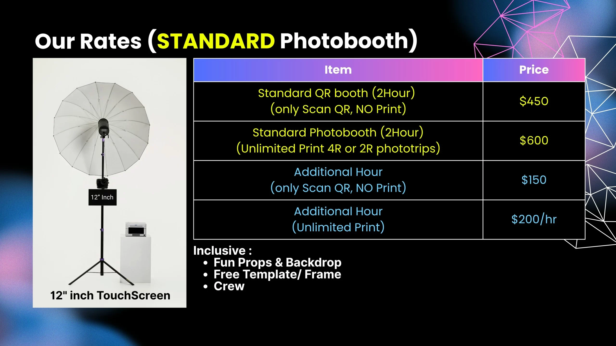 Our photobooths generally require a space of around 2m x 2m, but we can adjust based on the venue layout. Let us know the details of your location, and we’ll ensure a seamless fit.